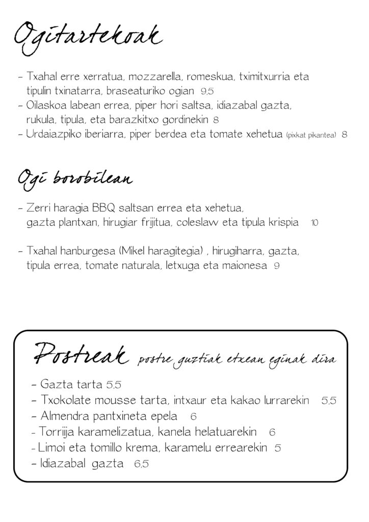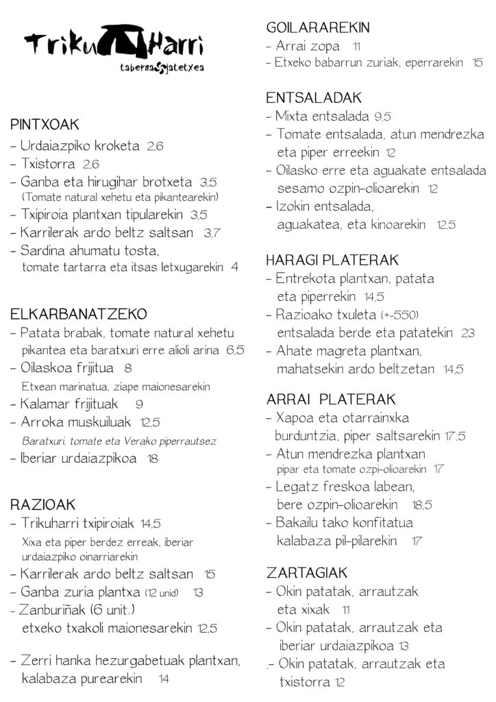 Auzoko taberna bat izateko asmo hutsarekin, gauzak ondo egiten saiatzen gera.Giro onean, jaki onez disfrutatzeko eskeintzarekin. Karta / Menua ERRESERBAK EGITEKO943 24 69 73